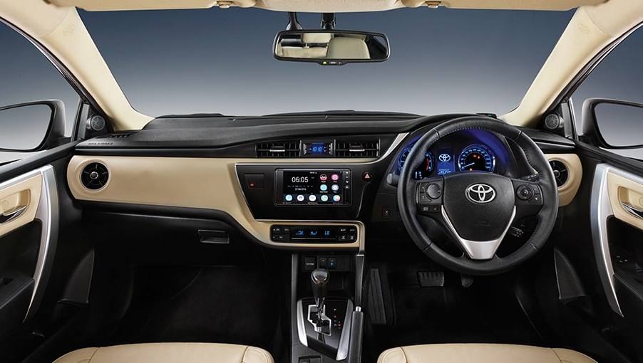 Sisi dashboard masih memakai karakter desain yang ikonik, yang dipadukan konsep modern sesuai kemajuan teknologi mobil saat ini. Toyota Corolla konsinsten menggunakan bentuk desain dashboard yang menampilkan simplisitas dan garis bentuk dashboard yang mendatar. Kesan dibuat mendatar selain tiada lekukan-lekukan yang dramatis, akan membuat pemngemudi merasa nyaman dan lebih baik dalam mengendalikan mobil ini karena memiliki visibilitas yang lebih luas sebagai salah satu key factor pengguna TNGA.